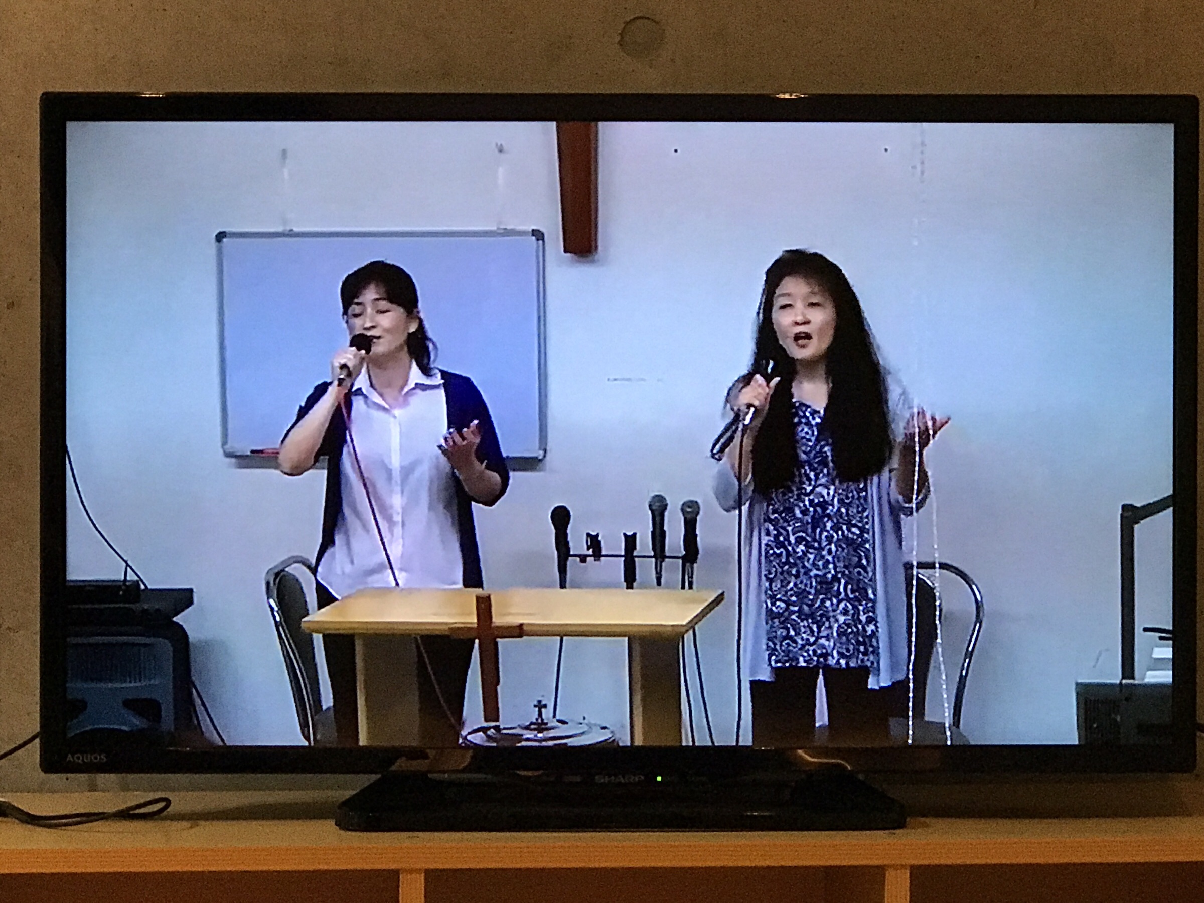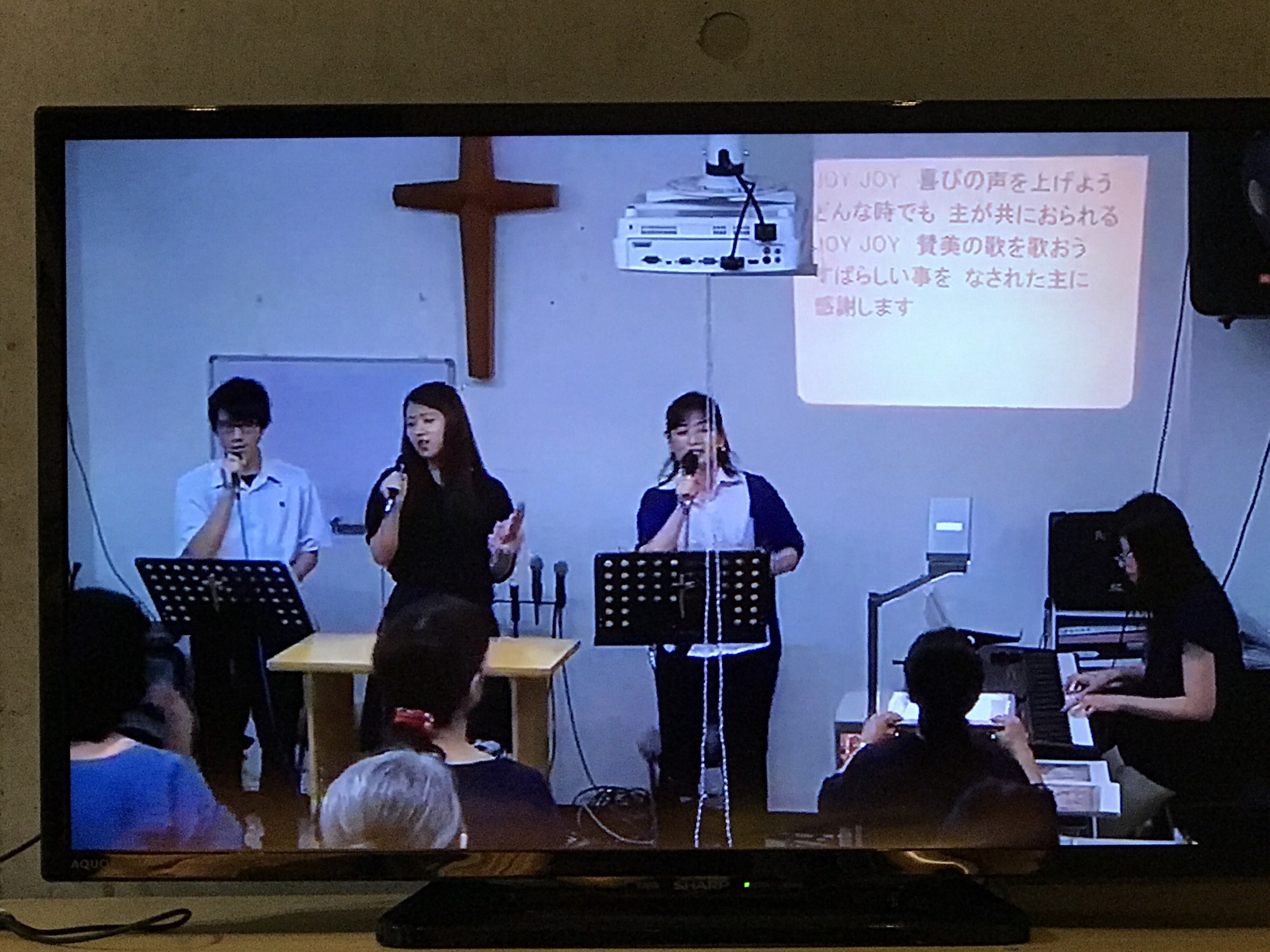 会衆一つとなって賛美しています。 臨在があります♪ — 沖縄エルサレム(nao)