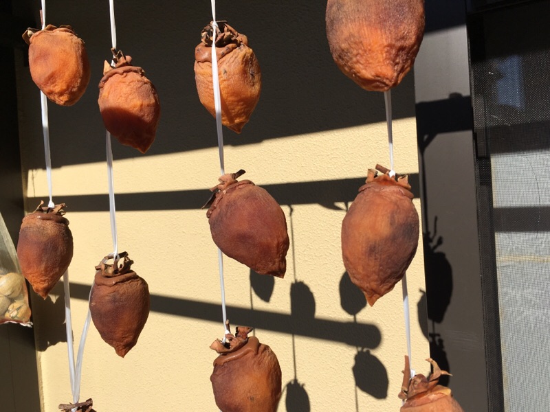 叔父から届いた渋柿を干して一週間です。あとどの位干すのかな? kato