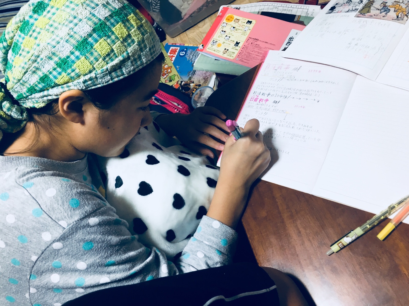 ビッグダディばりの次女も勉強中^ ^ 明日、社会のテストがあるそうです。 デニシ