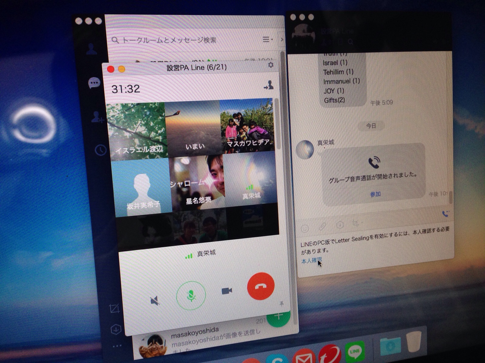 設営、Line祈祷会してます。わた