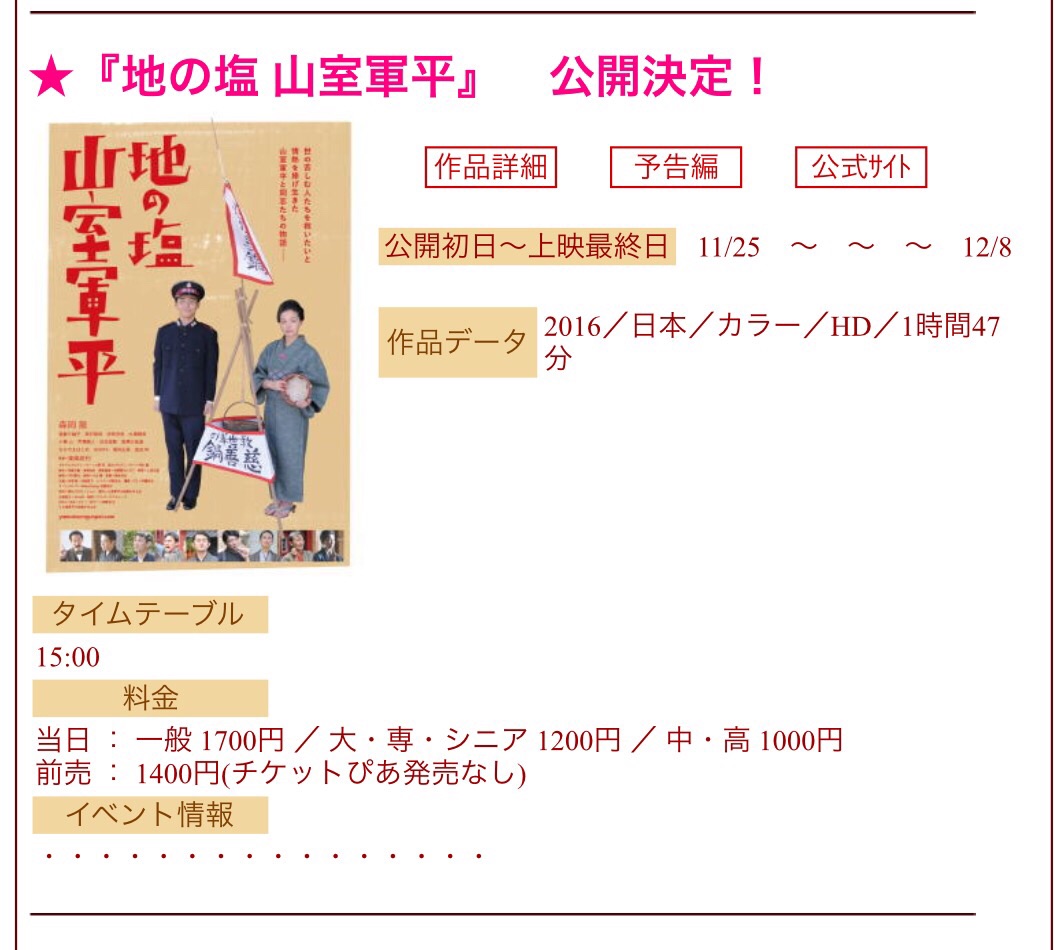 まさかの東中野!映画「地の塩 山室軍平」 2017/11月/13 [月]