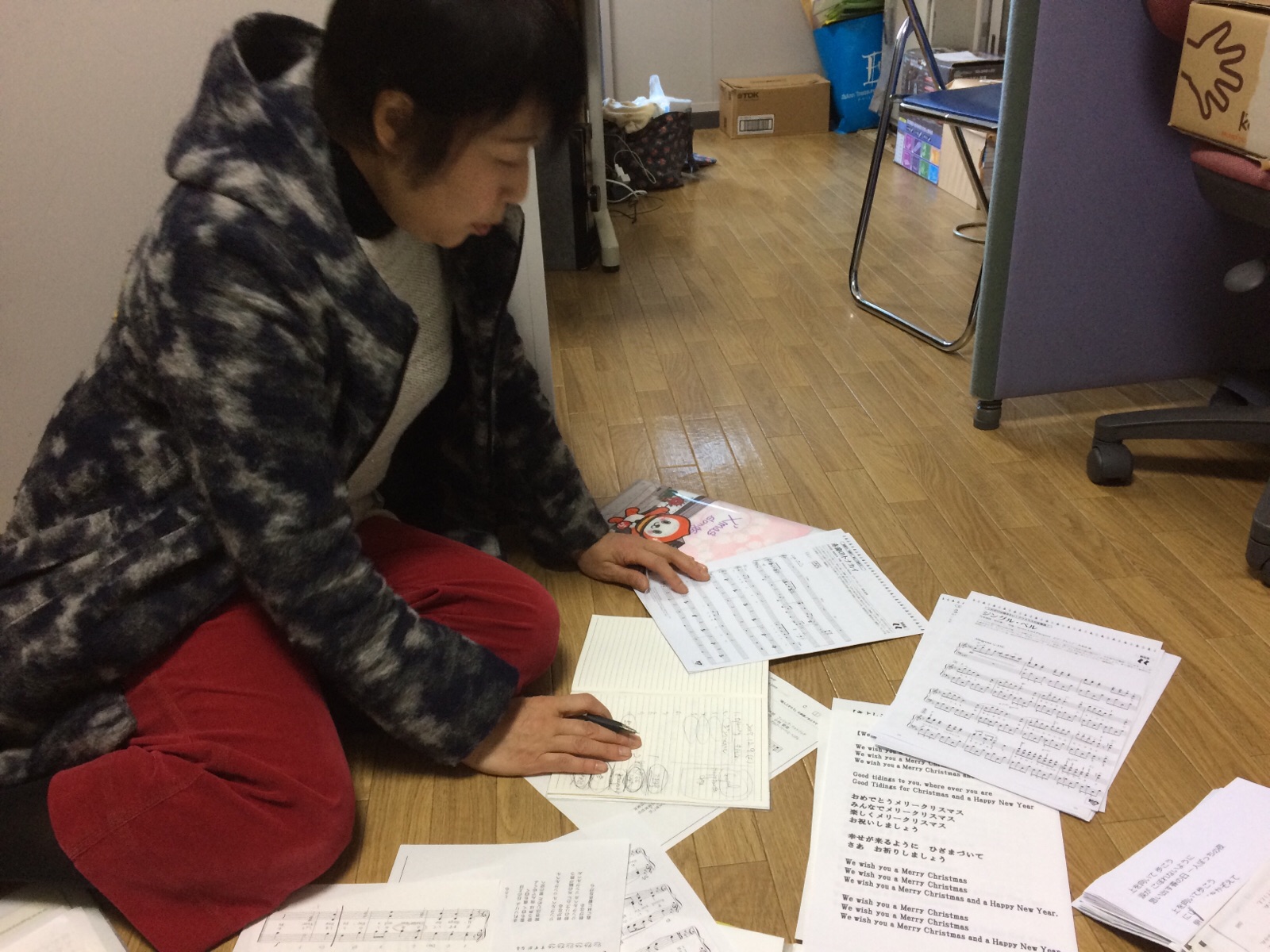 少し前に、土曜礼拝終えた益川さんも来てくださり、楽譜を準備してます。 ミカエル