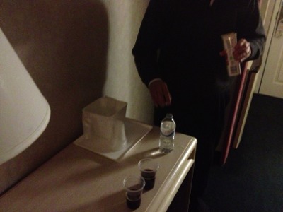 フルーツドリンクをリベカ牧師が下さいまして、今、それを全員で飲んでみようとしています。