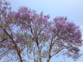 今日の移動中に見つけた淡い紫色の花のジャカランタです。