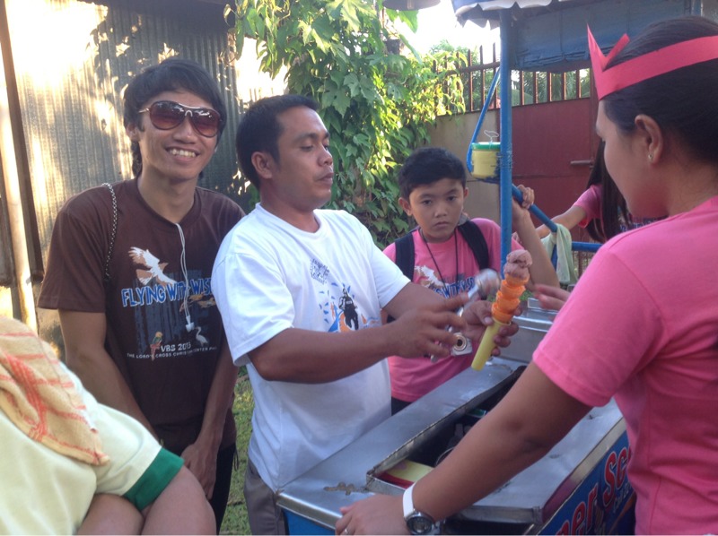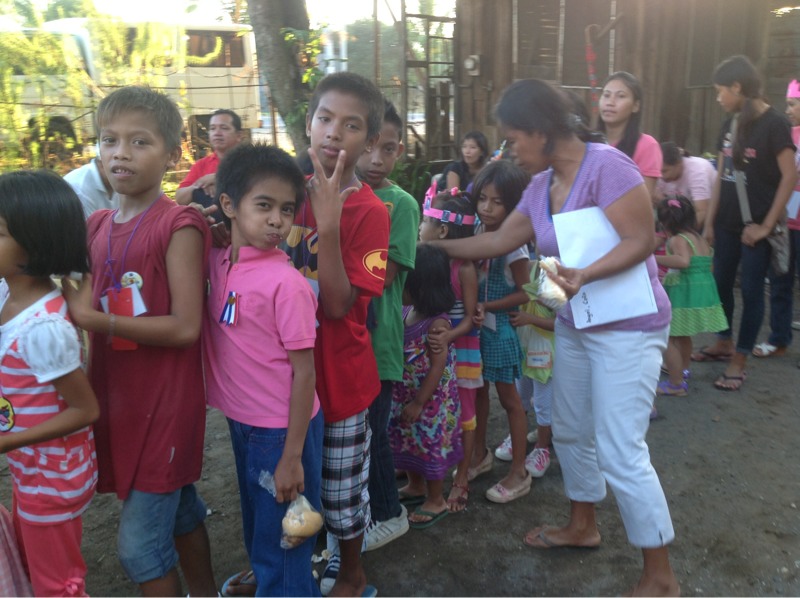 この列の先には、アイスクリームが!聖書の学びをする子供たちにスペシャルなアイスクリームのプレゼントです。(フィリピン)