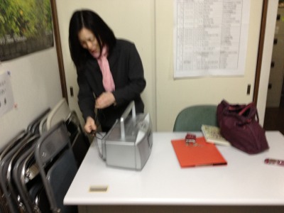 りょう子牧師は、英会話の授業の準備中。