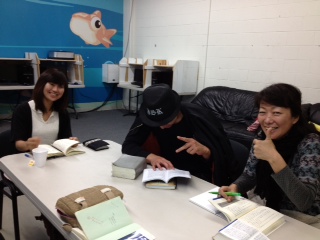 預言者学校を行っています。 今日は4人で学んでいます。 1人は英語のテキストを使用しています。^0^