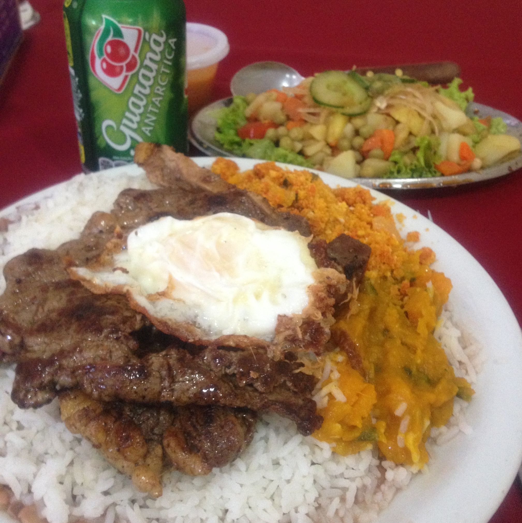 レストランに到着しました。もう電池が35%なので、今日は孤児院の土地のある場所に行くのはやめて、帰ります。料理はプラット・フェイト(定食)で17レアル(千円くらい)。(Brazil)