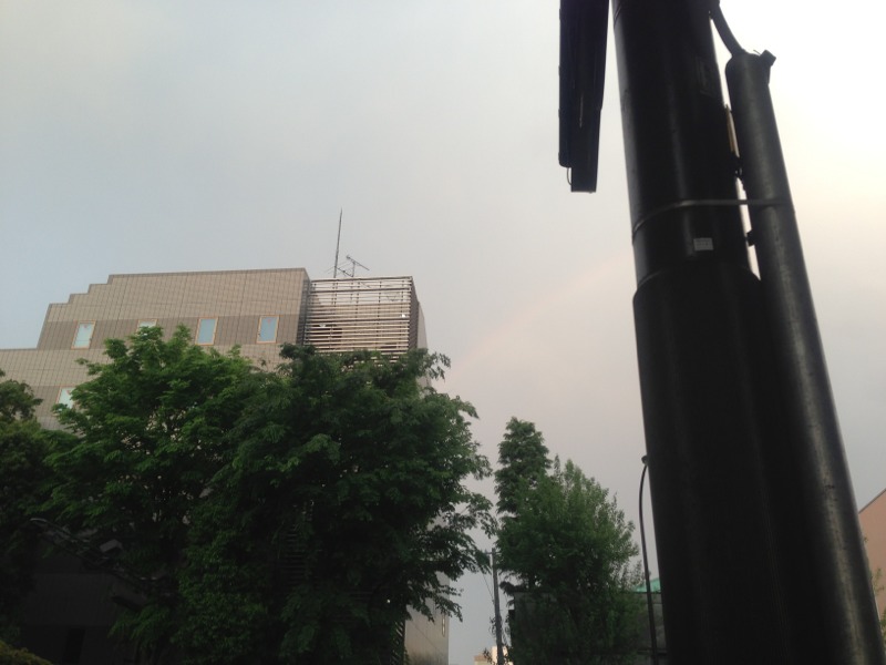 虹が出そうな雰囲気だねーと言っていたら、薄っすらと虹が出ました。人だかりに、通りかかった方はUFO出たの?と一言。