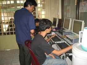 これからの時代、コンピューターの学びは必修ですね。孤児院でも、子ども達はパソコンゲームで遊んでいます!?いえいえ、学んでいます!(カンボジア)