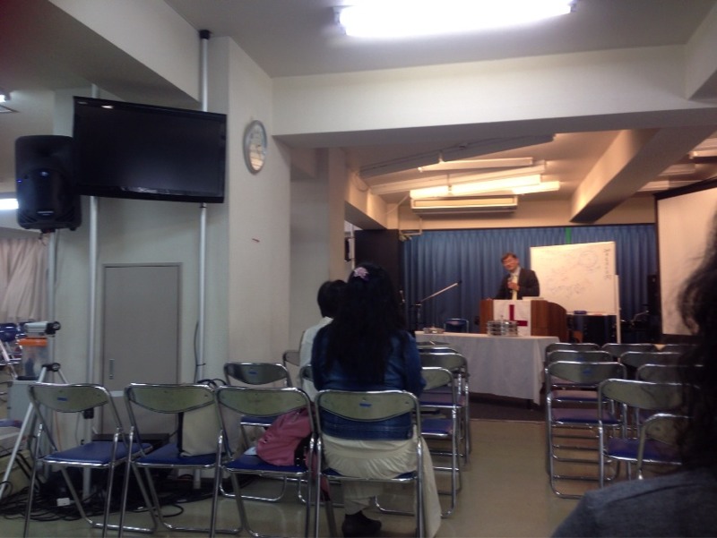 窪田牧師メッセージ中。 お昼直後、ウトウトしている方もいますね。