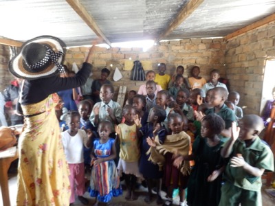 ザンビア教会では、貧しい地域での宣教、社会奉仕の教育の働きもしています。(写真はカセンガ地区、孤児院併設の小学校。ゴスペルを歌っています。) アフリカ部門