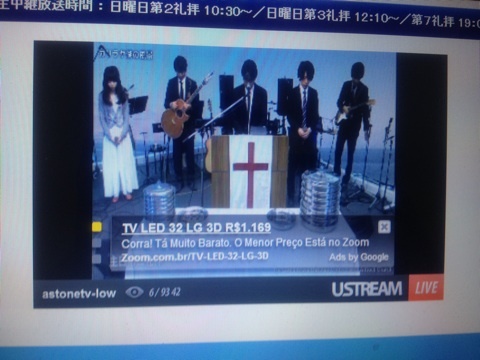 第二礼拝、始まりました! 地球の反対側、ブラジルからも見てくださっていますね!