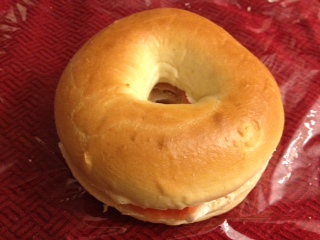 今日のメニューは、クリームチーズ・スモークサーモン・ベーグルサンドイッチ。