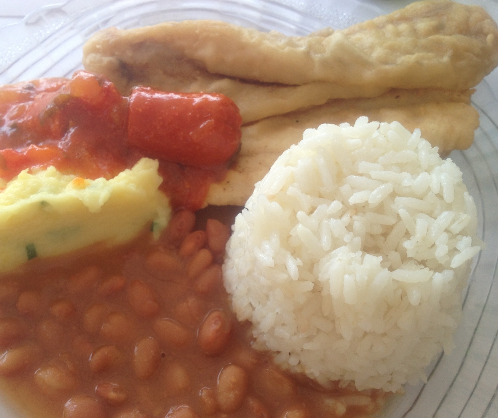 白身魚はメルルーサという種類のものです。日本によくある白身魚との違いはよく分かりません……(^-^)。9.5レアル。(Brazil)