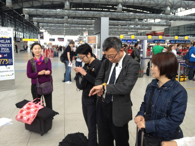 Taxis has come, but two members of us don’t come yet.