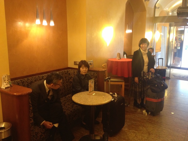 Now we’re waiting for a taxi after checking out.
