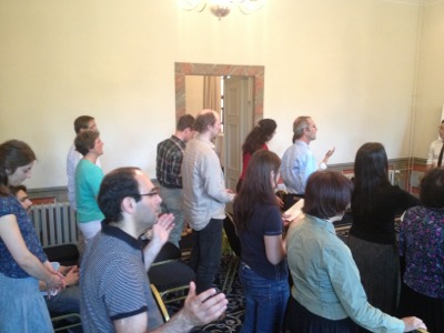 英語での通訳付きのメッセージですが、ドイツ語しか分からない方も来られているので、席で通訳して下さっている方もいます。