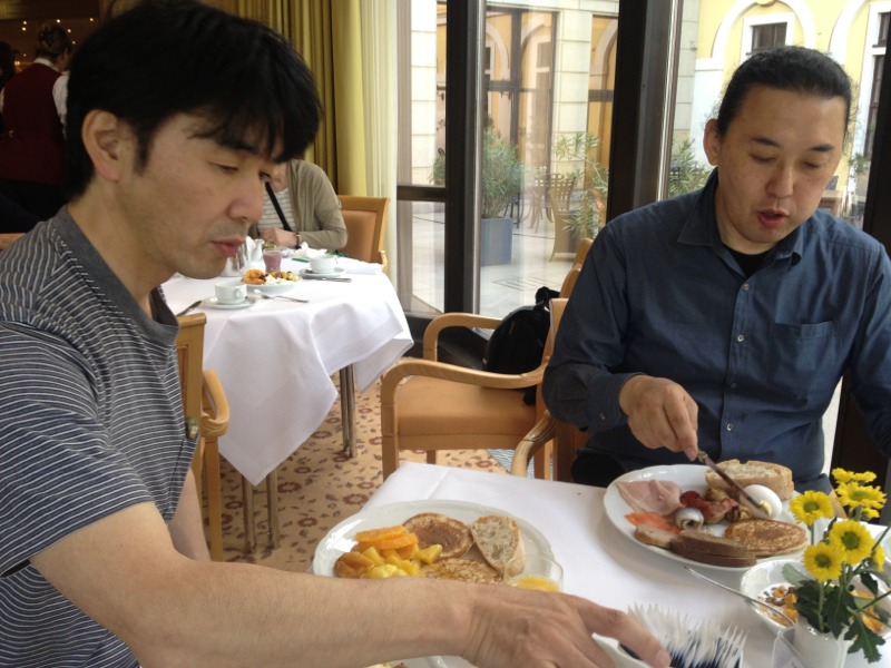 朝ごはん☆美味しくいただきました!この後、10時チェックアウト。11時の特急列車でプラハに移動します。