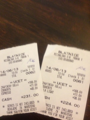 ランチのレシートです。コロナですが、上にユーロの価格が手書きでありました。どちらも10ユーロ?でした。