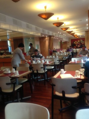 Early morning prayer meeting has finished. We can have breakfast from 6:30 in the morning.Here are not many people.