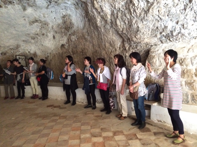 誘惑の山にある修道院まで階段を上って行きました。そこで賛美しました! ツアー組