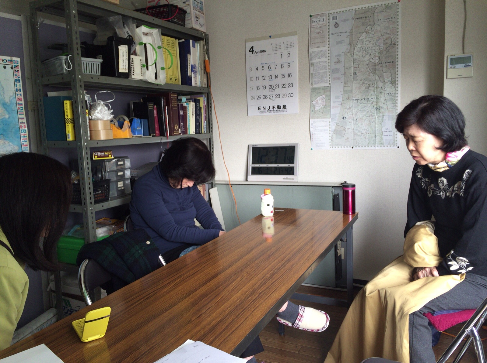 待合室にさとこさんとマリさんがいらっしゃいます(^^) 「ゴスペルのご馳走、いただきま~す」小代