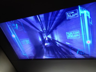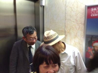 Inside of the elevator.エレベーター内。 There are view of up avobe on the screen!