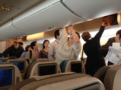 飛行機に乗り込みます。