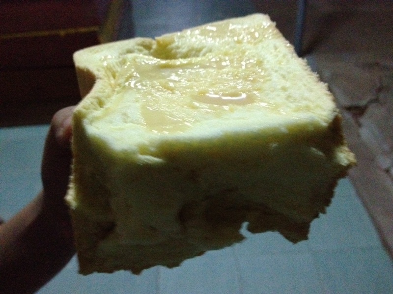 食パンに練乳をかけて、安くて美味しいおやつです。 カンボジア