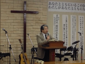 いやしの集会が行われています。 いやしの集会でメッセージを語られるイザヤ木原真さんです。