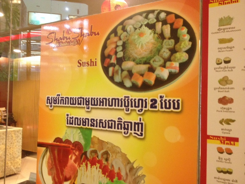 お店の名前はシャブシャブ、でもスシもあるらしい! カンボジア