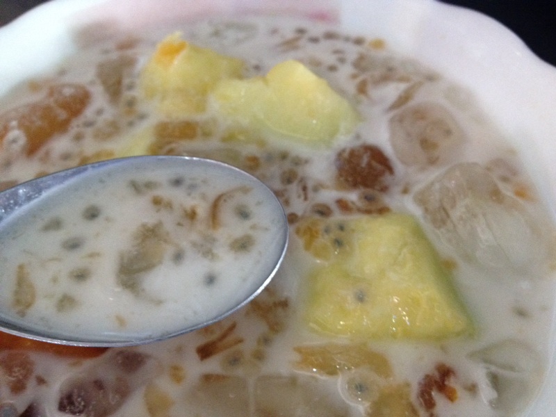 屋台スイーツ、ボンアエム。 メロン、ゼリー、氷などなどにココナッツミルクがかかってました。 カンボジア