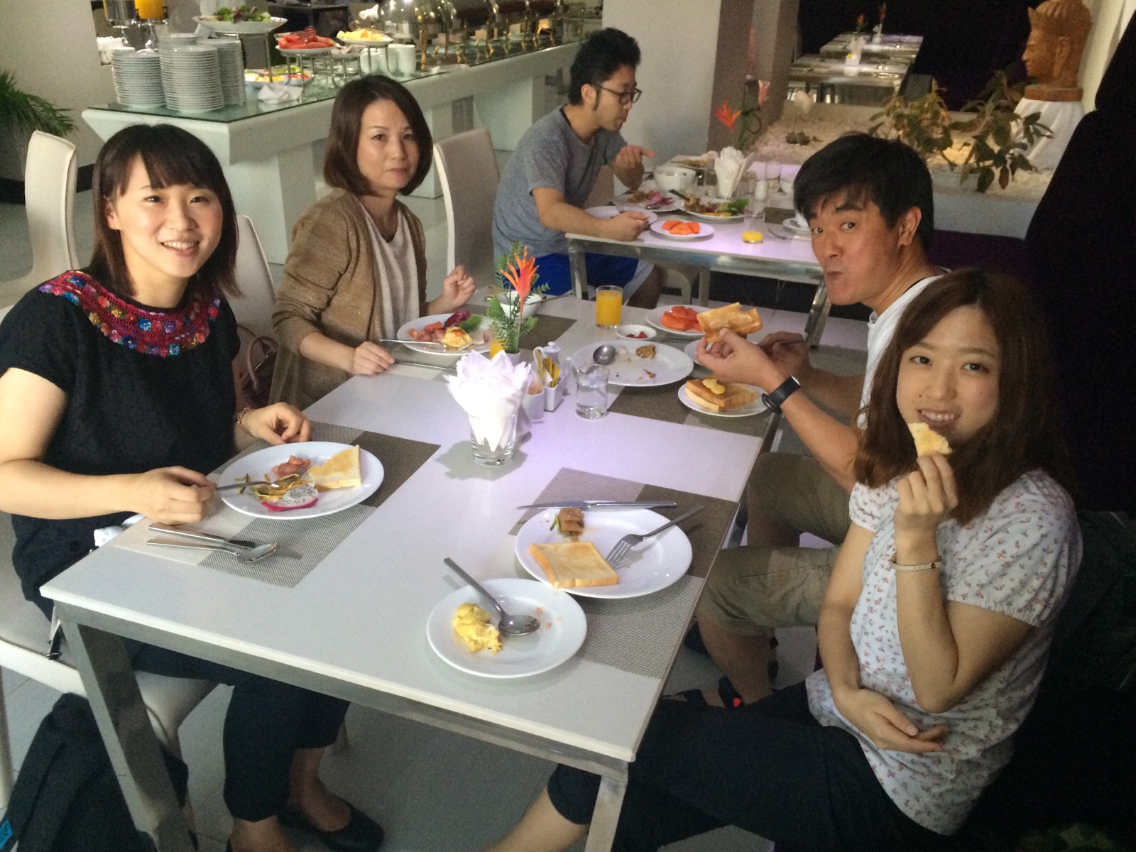 みなさん元気です! 朝食おいしいよ〜(^O^)/
