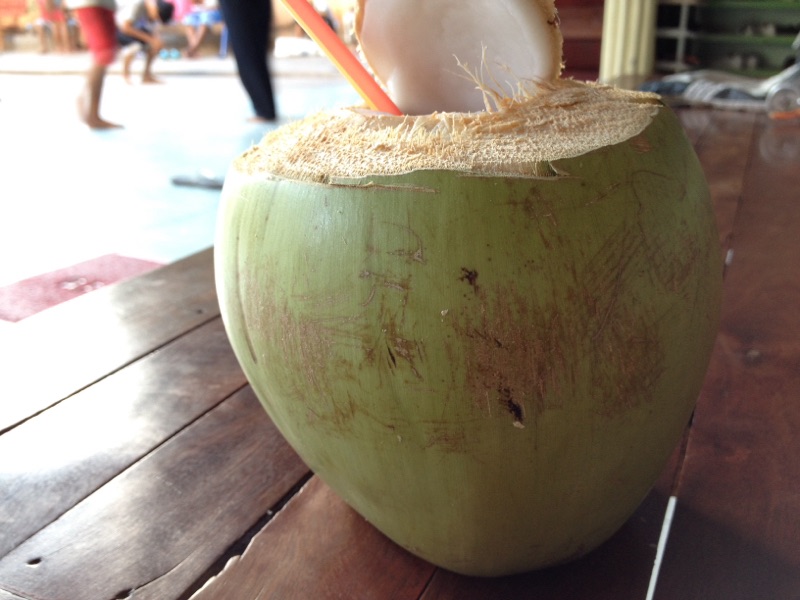 風邪の時はココナッツジュースを飲みます。孤児院の庭でも年に数回収穫しています。
