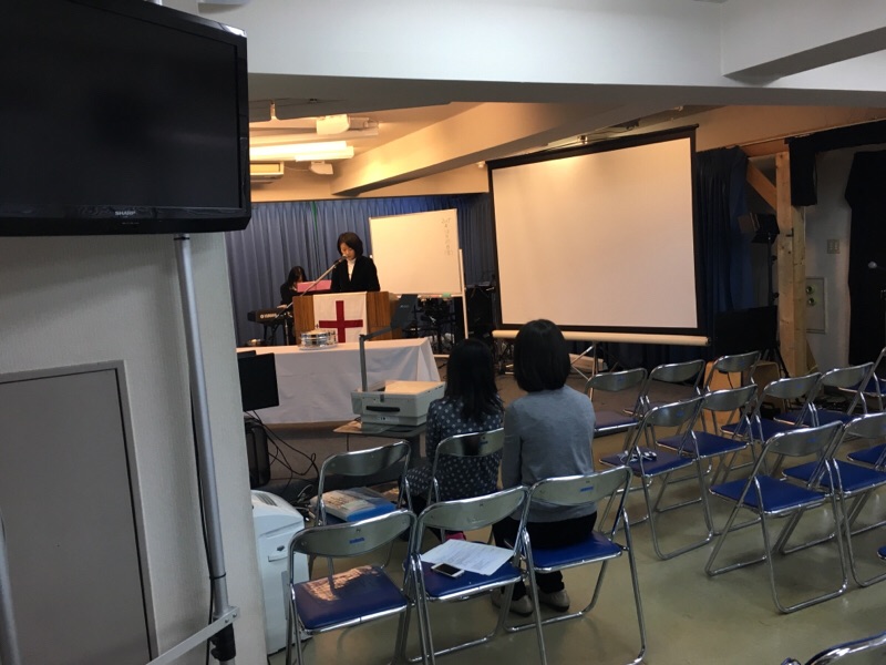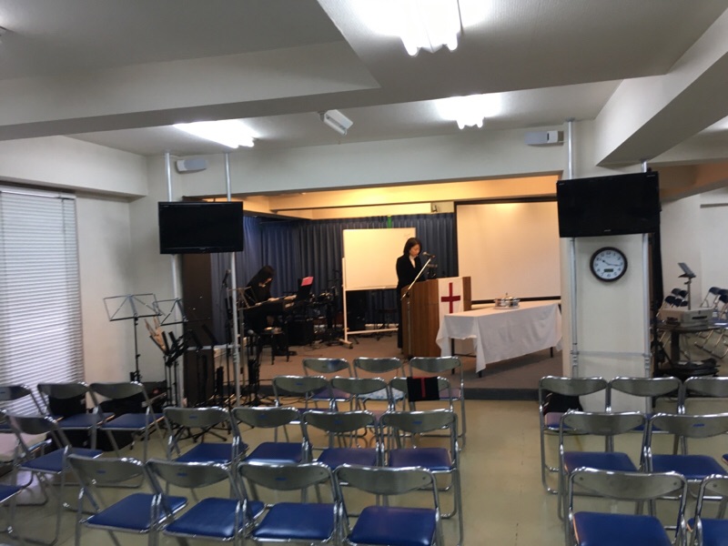 会堂では金曜日礼拝が行われています。 今日のメッセンジャーは山中さん。
