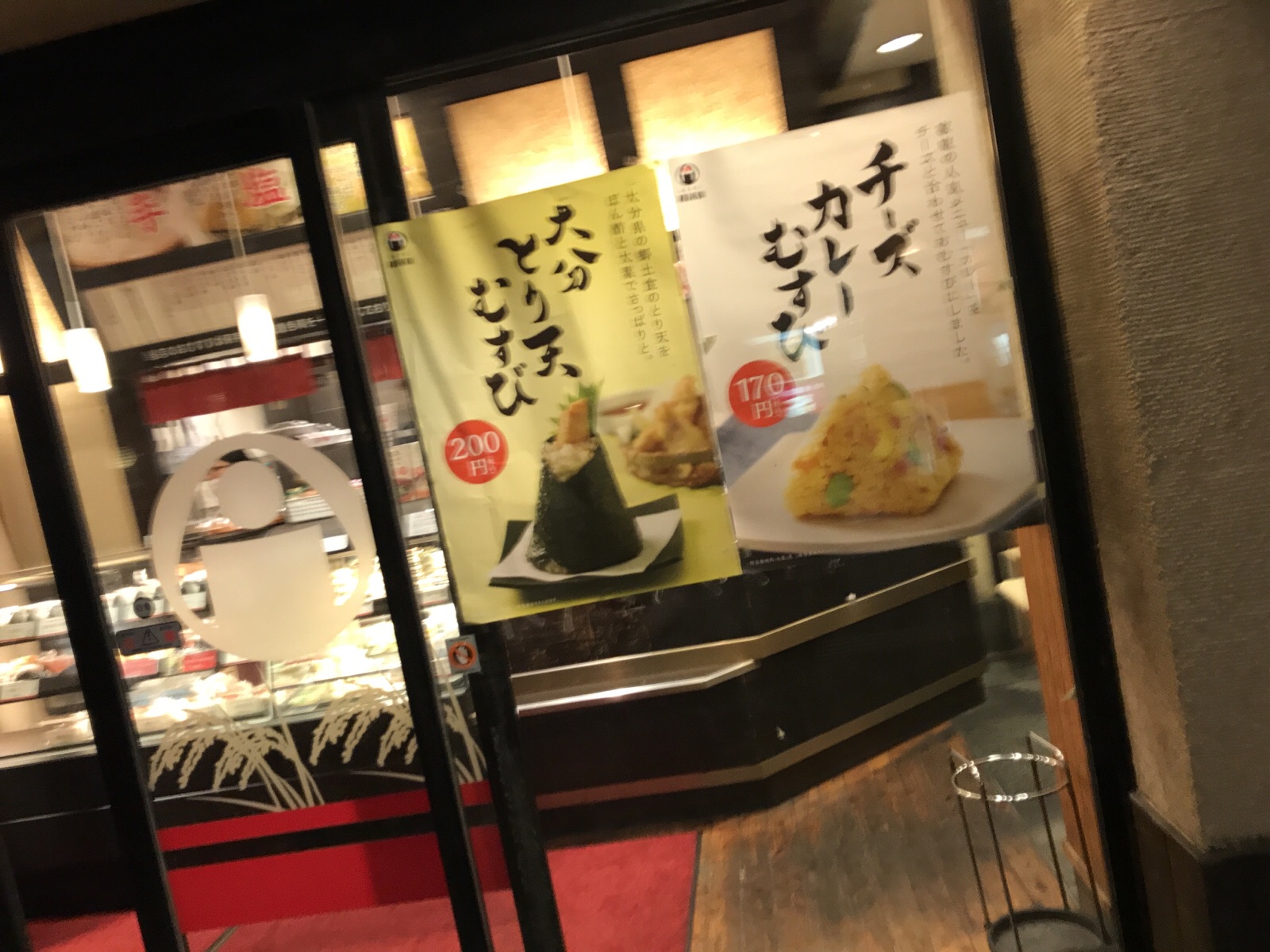 美味しいおにぎり、金券ショップのオブジェがおかしい。綺麗な駅です。