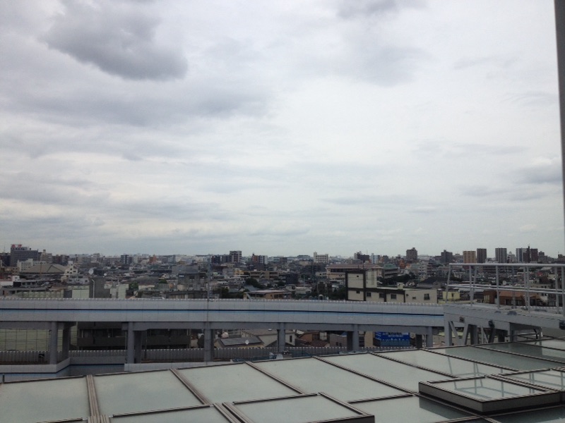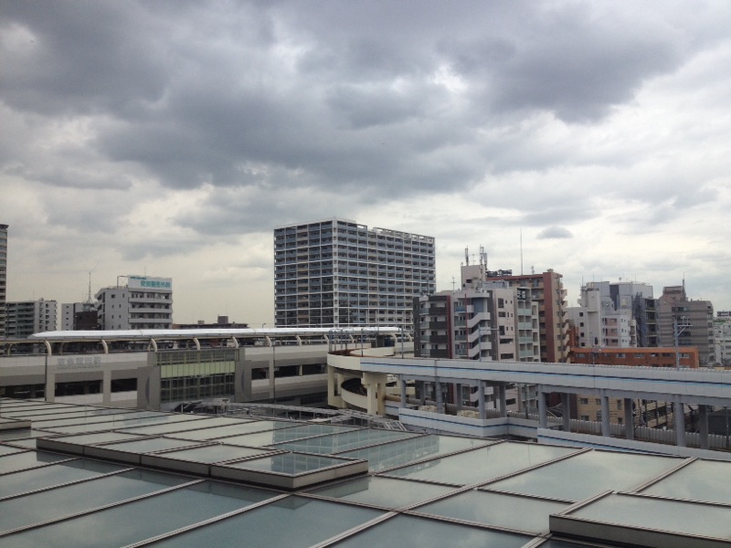 会議室の窓から。 京急線の電車が見えます。 雲の間にある虹出版 kato