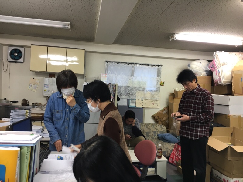礎の石事務局の様子。これから続々とスタッフが集まってきます。(yoshino)