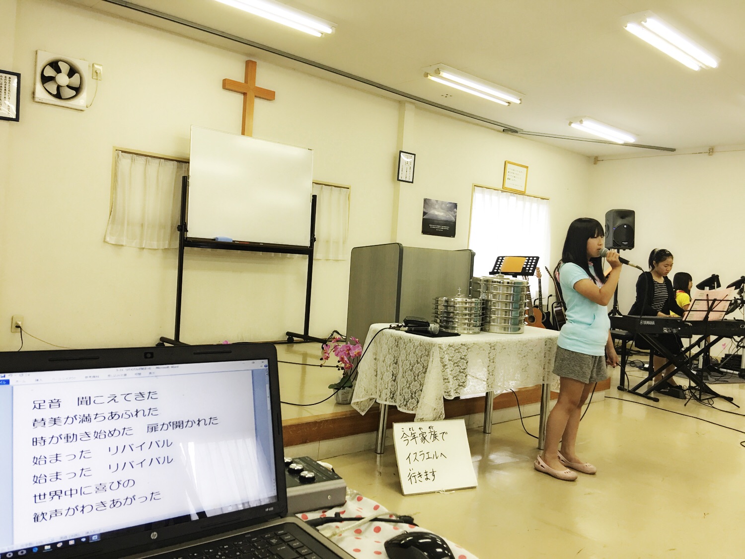 第一礼拝が始まっています! 会衆賛美リーダーは、フィベ広田さん♫ oji