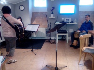 礼拝の後に、ゴスペルコンサートにむけて最後の練習。あせる!プラハ