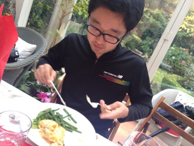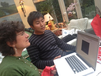 ニューヨークやダバオの働きについて、デイヴィッド牧師とお話ししています。