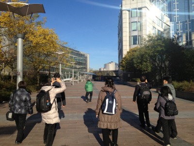 EU議会の前で、祈るため歩いて移動します。