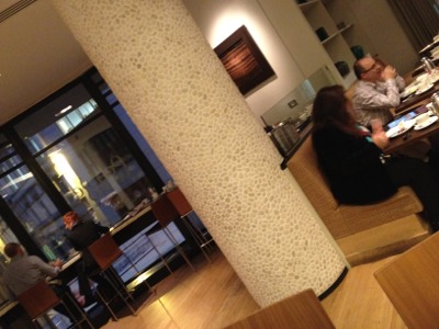 奥の壁には花の写真がかけられてます。 この食堂は爽やかな平原をイメージしているのでしょうか?