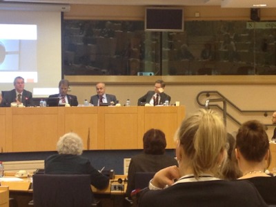 今日の議場は5階です。窓の外の景色は、こんな感じです。