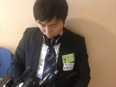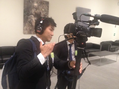 イスラエル大使にインタビューをトライしようと、弓野牧師が待機しています!
