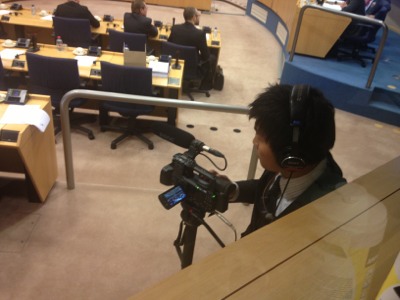 インタビューの様子を撮影しています。