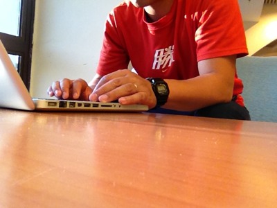 一転して、日本のスタッフとメールで 連絡をとりあっています。