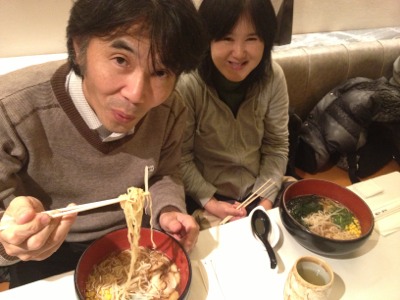 Pastor and Mrs. Kobayashi have chosen Chinese noodles in soup topped with slices of roast pork and seaweed ramen!