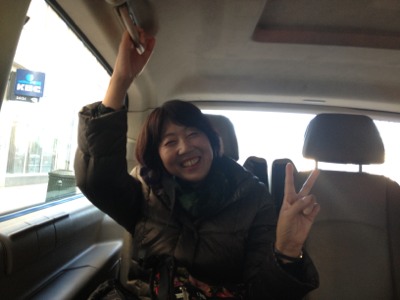 6人乗りと4人乗りのタクシーを頼んだら、6人乗りが遅く来たので、小柄な私達にはゆったりすぎる~( ̄ー ̄)~マレックさん、ごめんねーm(_ _)m